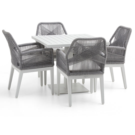 Avoca Outdoor Square Pedestal Aluminium Dining Table with Hugo Rope Chairs