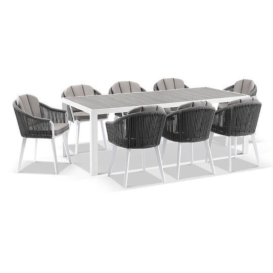 Southport Outdoor 2.17m Aluminium and Ceramic Table with 8 Alpine Chair